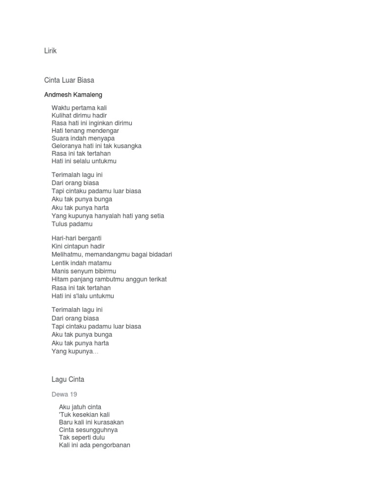 Lirik Lagu Cinta Luar Biasa Andmesh Kamaleng Dan Chord Gitar Celebrities Id